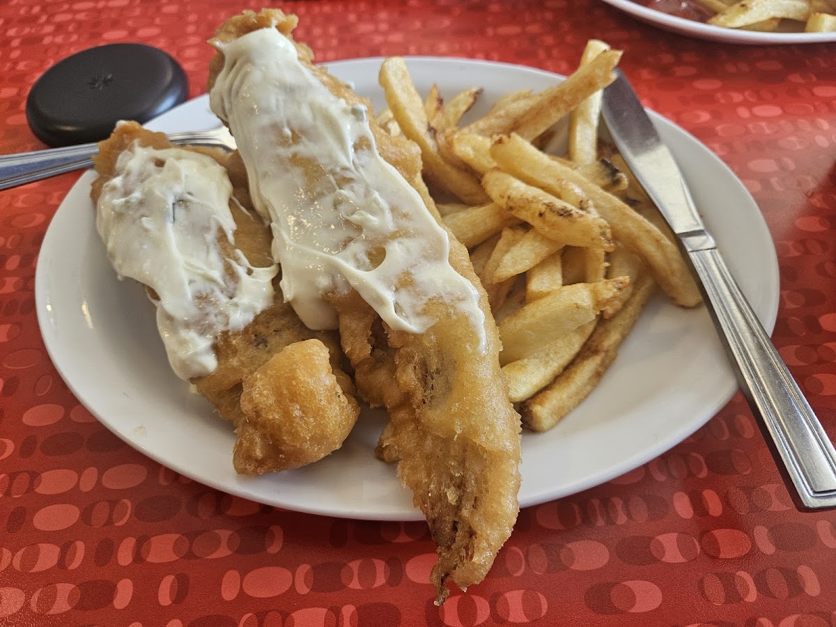 Their menu focuses tightly on a handful of well-executed choices like haddock, halibut, and white fish, all deep-fried fresh daily to achieve a light, crisp batter that manages to avoid excessive greasiness. Alongside fish are traditional sides such as coleslaw, onion rings, and deep-fried mushrooms, adding variety without losing that classic fish-and-chip character. The option of gravy and homemade tartar sauce complements the meal in the way many locals seem to expect from a long-standing institution.
